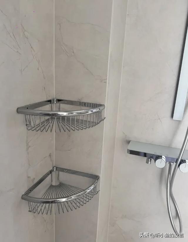 置物架不占地面空间,能收纳洗漱用品,脏了直接擦拭即可,实用性和灵活性远超壁龛。